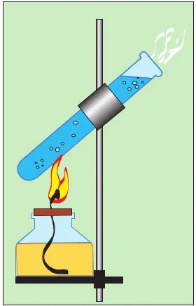 Для нагревания пробирки ее следует зажать в держателе и равномерно прогревать в пламени горелки При нагревании открытый конец пробирки должен быть обращен в сторону от работающего и от соседей по столу"