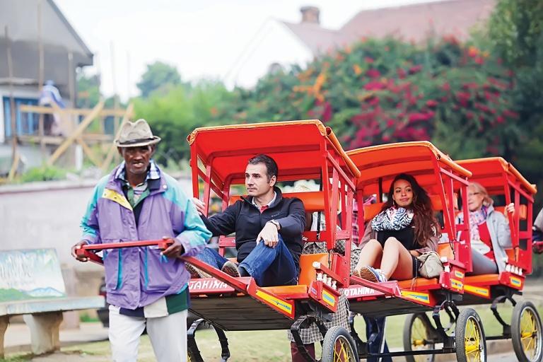 Мне кажется, что рикша не везет пассажири, а высаживает (или берет) Ракурс такой. ИМХО.