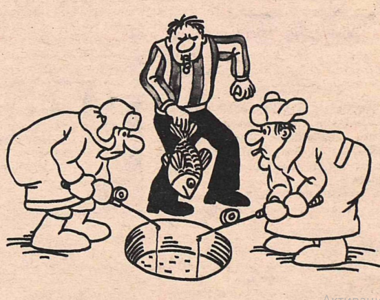 Рыбак собрался на зимнюю рыбалку. Вышел рано утром - холодно, снег... транспорт не ходит. Махнул рукой, возвращается домой. Жена ещё спит. Влез под одеяло, пристроился к жене..