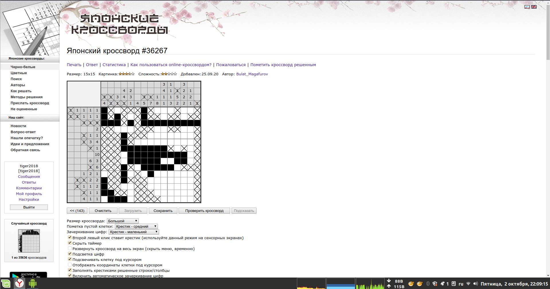 | Размер: 15x15 | Картинка: | Сложность: | Добавлен: | 25.09.20 | Автор: Bulat_Magafurov |