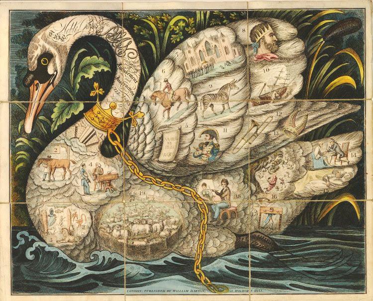 ответитьВ Гуся играли на доске, на которой нарисован фантастический свиток, называемый «жардин де л`уи» («гусиные гардины»), разбитый на 63 области, помеченных разными эмблемами, такими как гостиница, череп, мост, лабиринт и т.д. На 1-й и на 63-й областях, так же как и на каждой 9-й между ними, эмблема изображала гуся.