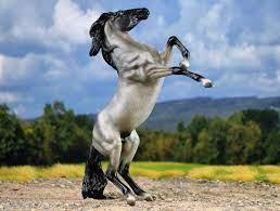 Мне кажется "на дыбах" конь должен стоять более вертикально, а изображенный в процессе становления "на дыбы" ИМХО