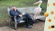 Довольный. Наверное, недавно рыбкой полакомился, а вторую в мешок спрятал.))