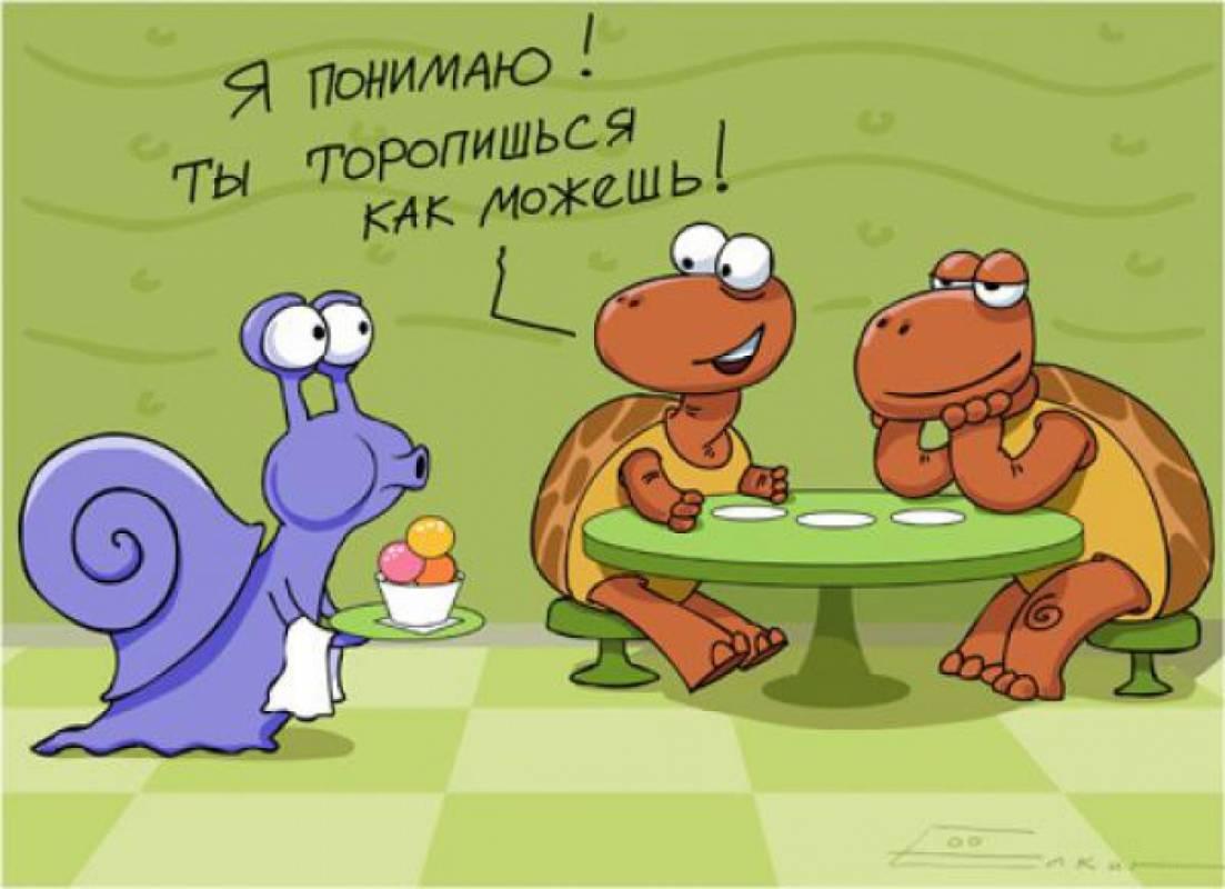 Сидит улитка на черепахе, высовывается, расправляет усики, смотрит по сторонам и говорит: