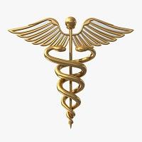 Жезл, обвитый двумя обращёнными друг на друга змеями, часто с крыльями на навершии жезла. Его появление в Античности связывали с мифом об Аполлоне и Гермесе. Согласно мифу, Аполлон в знак примирения с братом подарил тому свой волшебный посох. Когда Гермес, решив проверить его свойства, поставил жезл между двумя борющимися змеями, те сразу прекратили борьбу и обвили палку. Гермесу эта картина так понравилась, что он их обездвижил.