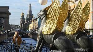 Не знаю, видна ли надпись, свидетельствующая что на Банковском мосту именно грифоны. Но пересылаю Вам. Если не видно, можно воспользоваться лупой.))