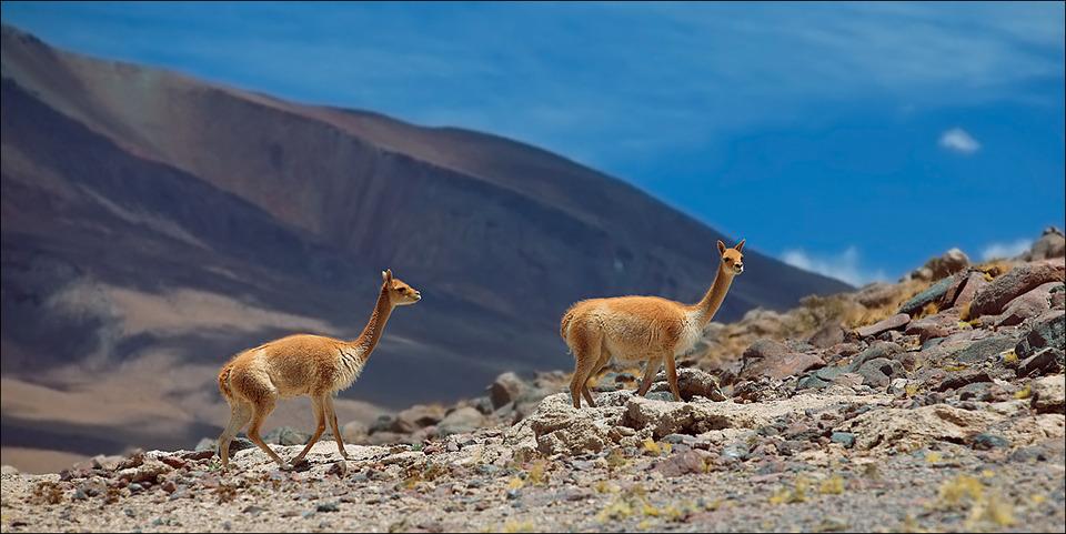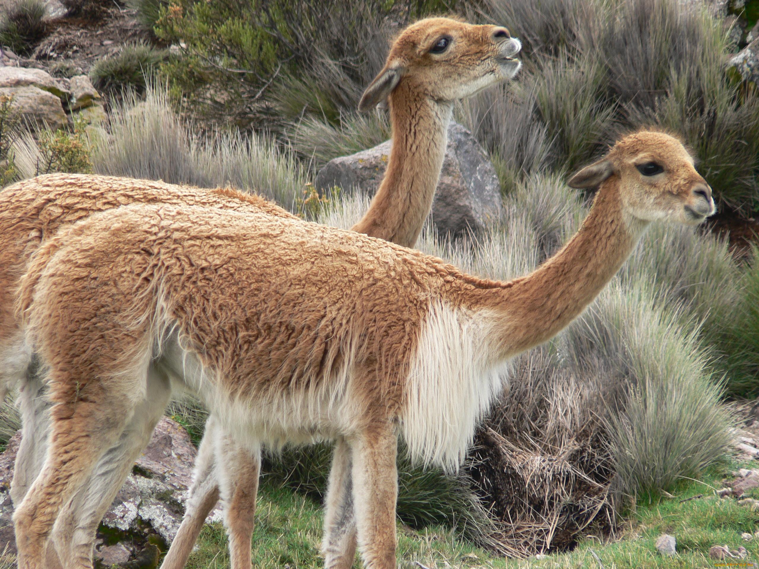 Фото 1-6. В. - самый мелкий вид безгорбых верблюдов (1,5 м). Распространены в Андах в Эквадоре, Перу, Боливии, Аргентине и Чили на высотах 3500-5500 м н.у.м. на каменистых плоскогорьях, пампасах, плато и в полупустынях, бедных растительностью. Обитают там с XII в. до н.э., задолго до освоения земли человеком.