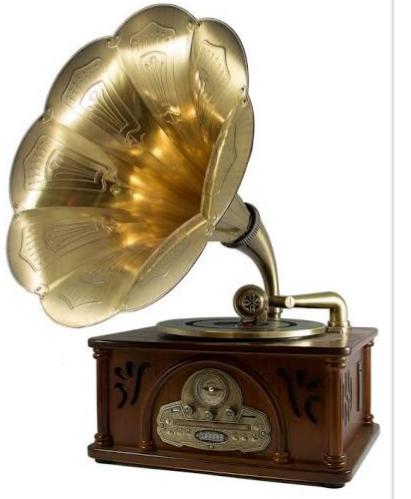 ответитьТолько это не патефон, а граммофон. В отличие от граммофона, у патефона рупор маленький и встроен в корпус, сам аппарат скомпонован в виде чемоданчика, переносится в застёгнутом виде за специальную ручку. Особенно эффектно смотрится у ГРАММОФ. огромная труба-резонатор,задача которой -