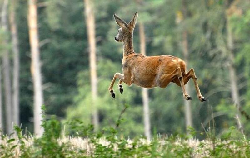 8-9. Испуганные ЕК передвигаются скачками 7 м и периодически подпрыгивают вверх на 1,5–2 м. Скорость бега взрослой ЕК около 60 км/ч, но бег непродолжителен: 300–400 м, (в густом лесу — 75–100 м), после чего начинает делать круги, запутывая преследователей.