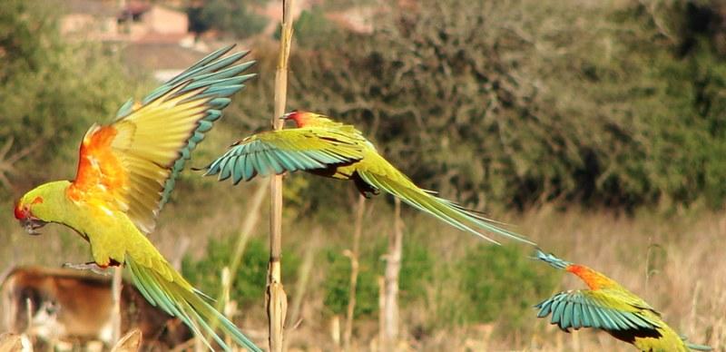 На кормежку КА вылетают рано утром, чтобы днем, когда стоит невыносимая жара, отдыхать - спать на низкорослых деревьях, в кустарнике или в расселинах скал.
