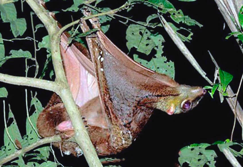 МШ еще называют летающих лемуром, хотя он не лемур, а только похожий на него родственник, и не летает, а планирует, как белки-летяги. Мастер планирующего полета (до 140 м) В этом ему помогает плотная перепонка, соединяющая конечности, шею и хвост. Сверху она, как и все тело МШ, покрыта густым мехом.Действительно, обаяшка!