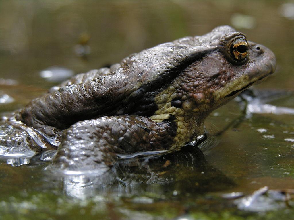 На конечностях, спине и боковой стороне туловища можно увидеть многочисленные округлые бугорки. Эти «бородавки» и паротоидные железы над барабанной перепонкой выделяют яд при нападении хищника. В период размножения у самцов и самок кожа более гладкая, а самцы становятся более желтоватым.