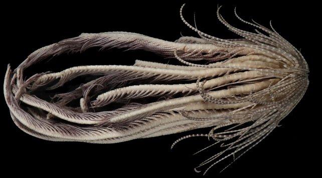 Ученые назвали его Promachocrinus fragarius. Оно обитает на глубинах от 60 до 1100 метров и относится к классу Crinoidea, куда также входят морские звезды и ежи. Особенность нового вида в количестве рук — у него их 20. Похожие, изученные ранее животные имели не более 10 рук. На концах рук есть крошечные когти для того, чтобы цепляться за океанское дно. Общая длина существа может достигать 20 сантиметров.