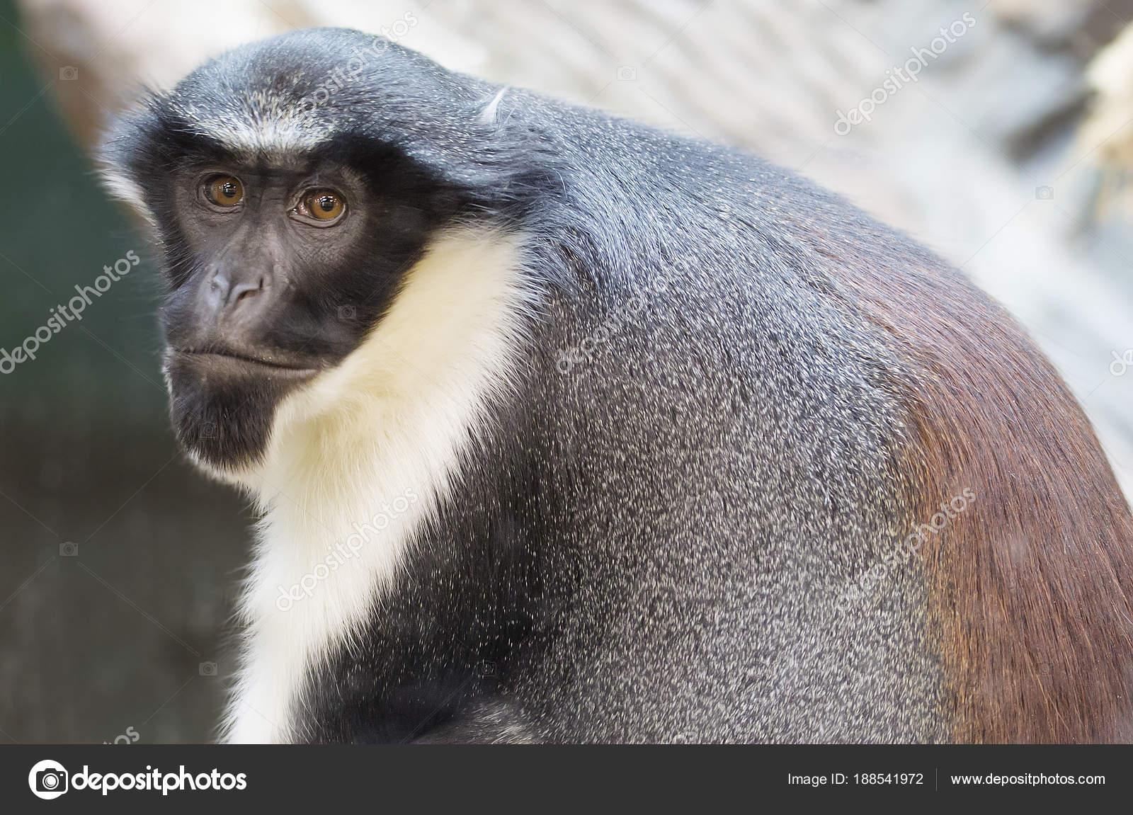 МД — одна из самых эффектных и красивых представителей семейства. Окраска яркая и контрастная: на спине - серая с каштановым, лапы и хвост черные, на бедрах белая полоса. Шерсть на крестце и внутренней поверхности бедер рыжая или кремовая — в разных регионах по-разному. Лицо черное, обрамленное густым белым мехом. Длина тела - до 53 см, плюс толстый (4см) длинный - до 70 см хвост.Эффектна и красива даже в ч/б!