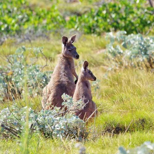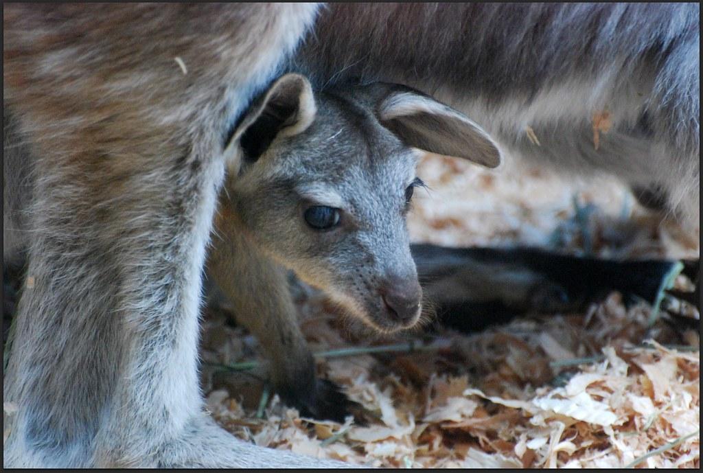 9-10. Kенгурята рождаются при круглый год. Cамки часто выкармливают одного малыша, носят в себе другого, а третий уже бегает, щиплет траву, но время от времени еще сует морду в сумку - подкрепиться молоком.