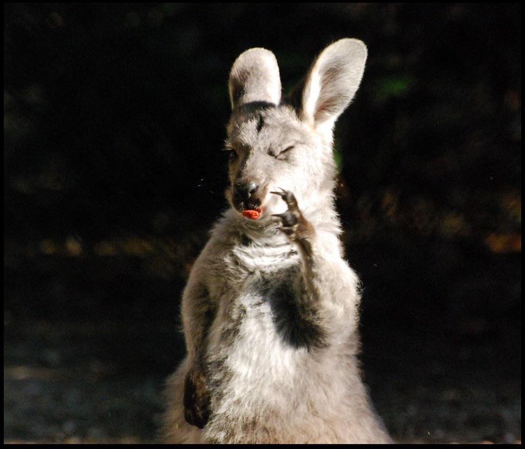 ответитьГК (валлару) - cамые маленькие из исполинских кенгуру (до 1.5 м , хвост до 1 м)Какой взгляд! Прямо тигр, а не кенгуру!)))