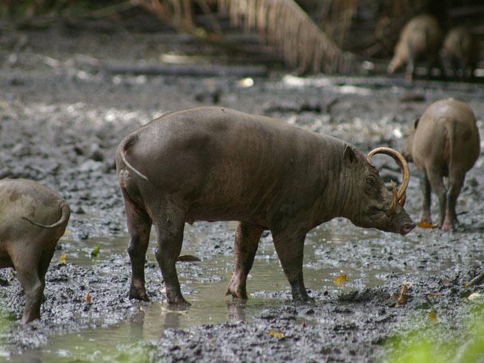 Еще от сородичей их отличает любовь к чистой воде. Для вымывания паразитов они валяются не в грязи, а в проточных водах. Кроме этого, Б. прекрасно плавают и могут перекусить пойманной рыбой.