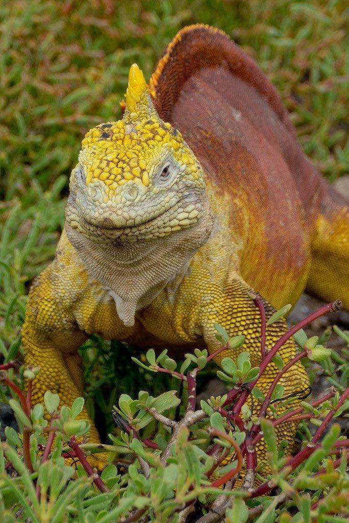 ответитьОК (желтая сухопутная игуана, галапагосский конолоф или друзоголов) - род игуан, обитающий исключительно на Галапагосских островах.Согласна, морда получилась милая и добродушная