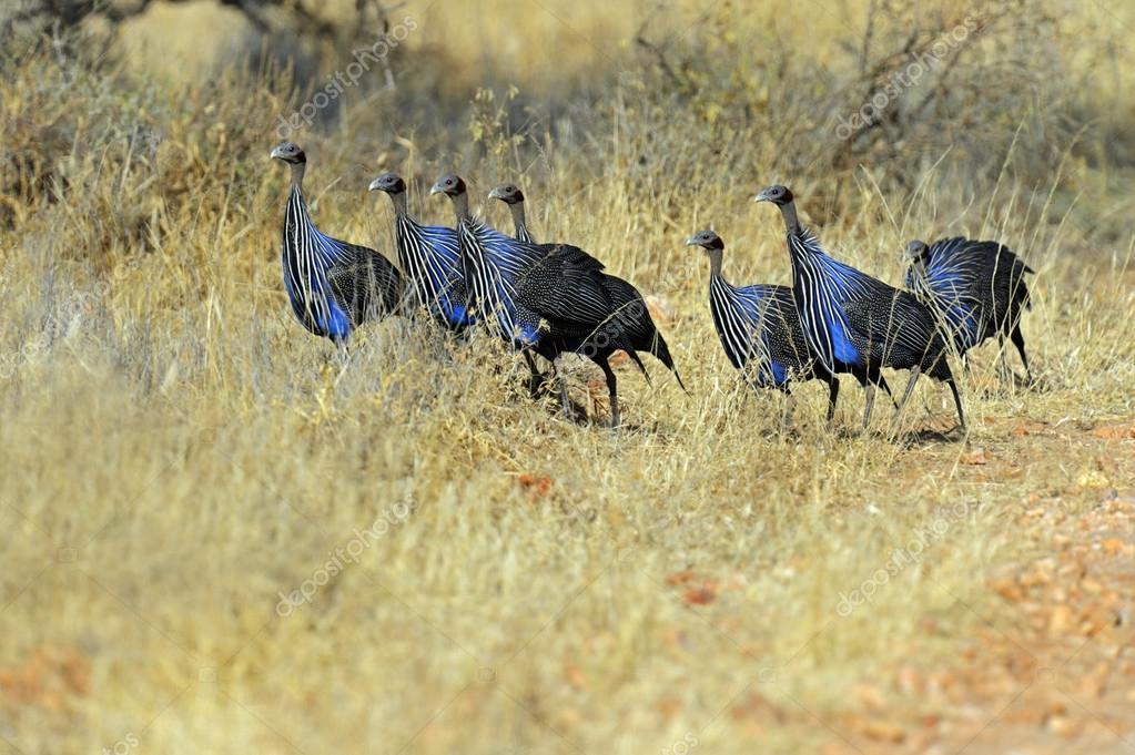 Живут небольшими группами. Каждая группа имеет по несколько «дозорных». Пока все птицы пасутся, они, вытянув шеи. внимательно наблюдают за окружающим.