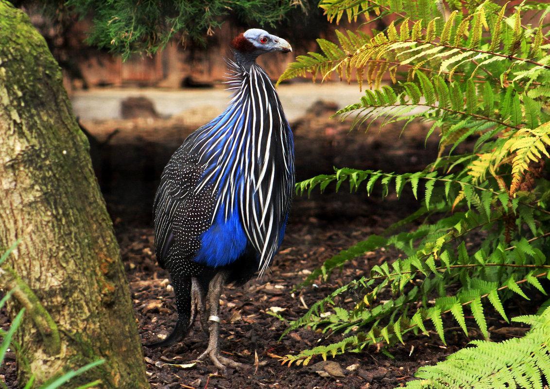 ГЦ - очень красивая птица. Она может похвастаться лиловыми, белыми, черными и блестящими кобальтово-синими цветами оперения.Шикарно! Прямо старинная гравюра!