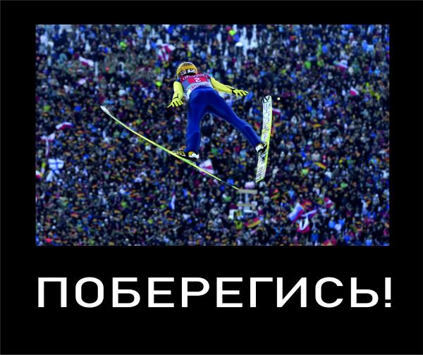 ответить"Лыжник висит на трамплине, рукав кимоно зацепился.