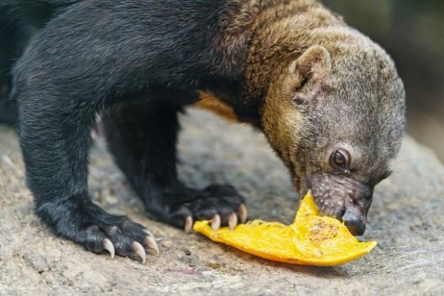 8. Но и вегетарианской пищей не брезгует: в рационе бананы, плоды женипапа, цекропии, испанской тропической сливы. Сахарный тростник с плантаций тоже очень уважает.