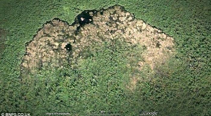 B Wood Buffalo National Park они построили гигантскую плотину, хорошо видимую на снимках из космоса (Ф. - эта «лысина» в лесу - тот самый "рекорд" дл. 900 и шир. 15 м, который КБ строили ок. 40 лет, отгораживая для себя заболоченную местность)