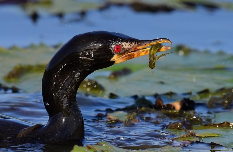 7. Между пальцами у КБ есть перепонки, что делает его отличным ныряльщиком. А вот особой железы, которую другие водоплавающие птицы используют, чтобы смазывать свои перья и делать их более или менее водонепроницаемыми, у КБ как раз нет. Поэтому перья при погружении впитывают воду. Но это так и "задумано": при нырянии за добычей удерживают тело под водой и не дает "пробкой" вылететь обратно на поверхность.
