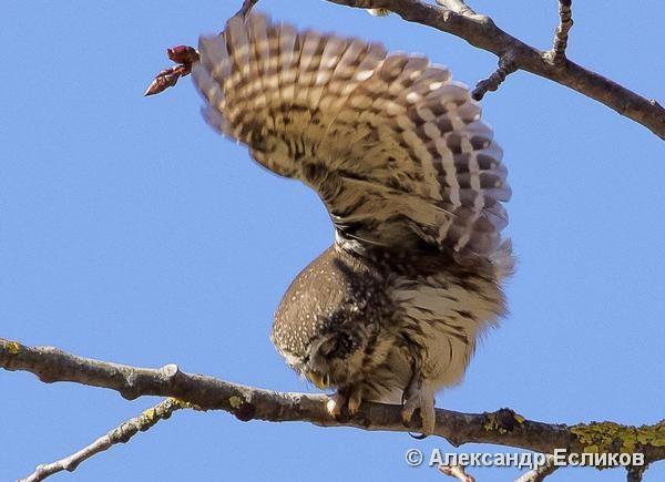 ответитьС. (Воробьиный сыч) - самая маленькая сова Евразии (до 20 см - не больше воробья. Уникальный голос С. также напоминает воробьиное чириканье.) Обитает в хвойных лесах от Пиренеев и Скандинавии до Ю. Приморья. Охотятся на хомяков, крыс, полевок, леммингов. Если пищи много, выедают только самое вкусное - мозг и глаза жертвы. А в голодное время не брезгуют и насекомыми."Шляпка" этому малютке очень идет!)))