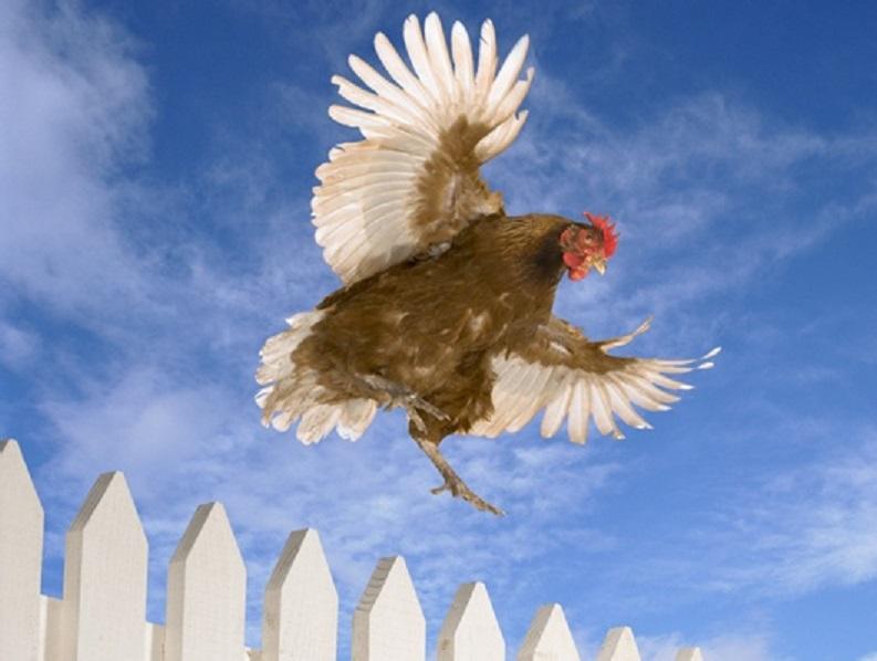 Не сидится курочке на месте, что она "поймает" на насесте? Даже если петушка приманит, на заборе он ее скорей достанет.