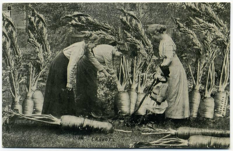На рубеже 19 и 20 веков популярность завоевали очень странные снимки с гигантскими овощами, фруктами и зверями размером больше человека. 100 лет назад о фоторедакторах никто не слышал и тем не менее мастера того времени научились использовать аналоговый «фотошоп».
