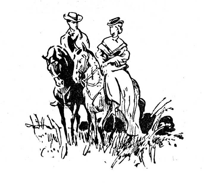 ... Они ехали рядом, бок о бок. Видимо, увлеченные каким-то интересным разговором, они не заметили догонявшего их одинокого всадника.... Герои только что избежали огромной опасности, благодаря храбрости и находчивости Мориса и мужеству Луизы. Посетили хижину мустангера и вот теперь спокойно возвращаются обратно по красивейшей прерии.