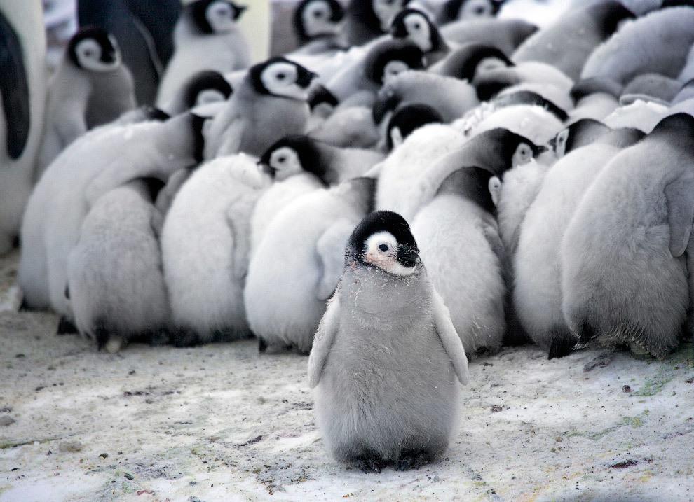 Обычно пингвинята светлопуховые и без "фраков". А здесь черный.