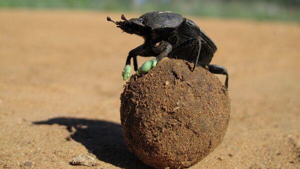 Что-то такое впечатление, что жук этот шар не катит а просто на него влез)))