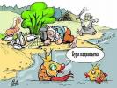 Рыбаки всю ночь пили на реке. Утром пошли ловить рыбу.