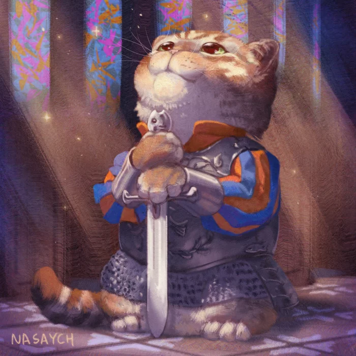 Решать было интересно, но это не кот в сапогах. Скорее похоже на даму с мечом и в шляпке