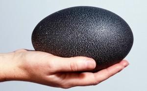 Эх, как жалко! Уронили яйцо и не на сковородку. А ведь, судя по черной скорлупе, это было яйцо страуса эму. И вкусное, и питательное, а весит до 900 грамм - всю семью можно накормить. Не повезло))