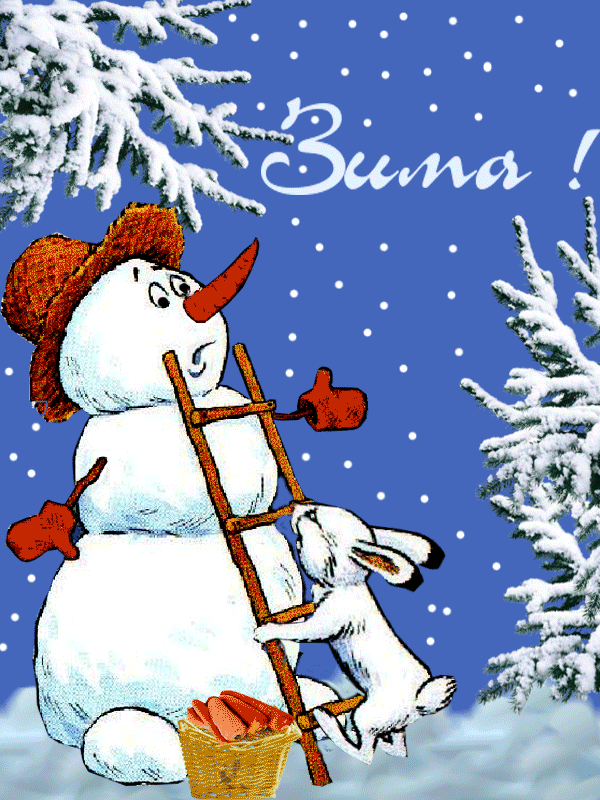 Какие замечательные друзья! Столько зайчат, а у Снеговика морковка цела))