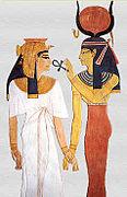 Ниже : Хатхор (одна из египетских богинь) вручает анх царице Нефертити. Сцена из гробницы Нефертити.