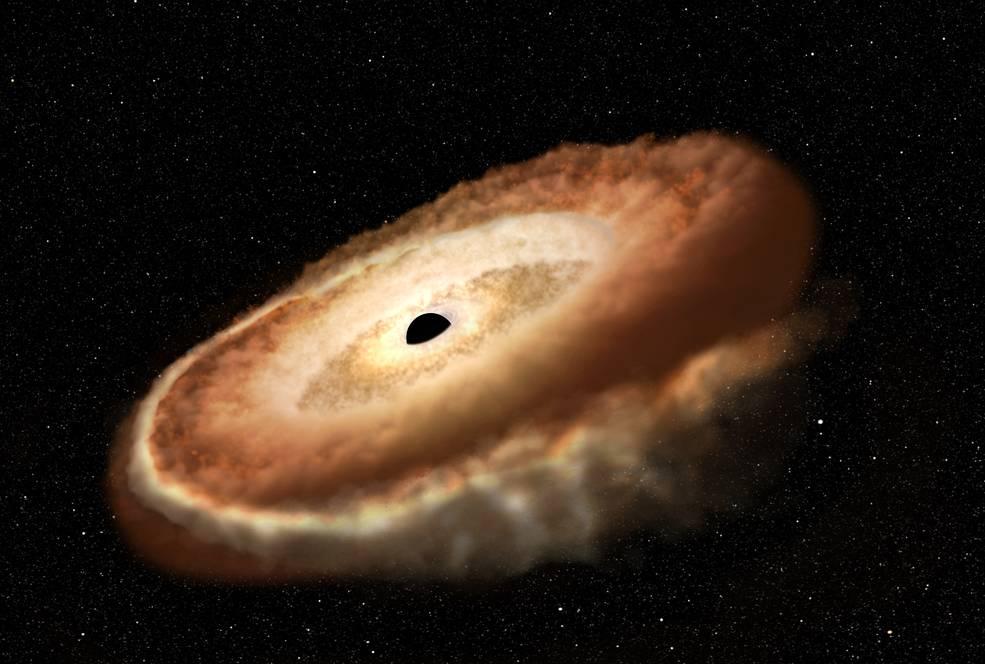 Такой процесс астрономы называют «приливным разрушением». Остатки звезды образовали ( https://www.nasa.gov/feature/goddard/2023/hubble-finds-hungry-black-hole-twisting-captured-star-into-donut-shape ) огромное кольцо вокруг чёрной дыры и теперь будут постепенно поглощаться ею, сопровождая этот процесс интенсивным излучением. Звезда оказалась на расстоянии почти 300 миллионов световых лет от центра изучаемой галактики.