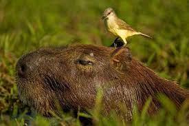 Это птичка, она выклевывает насекомых из шерсти животного. И не только капибары, но и других животных))