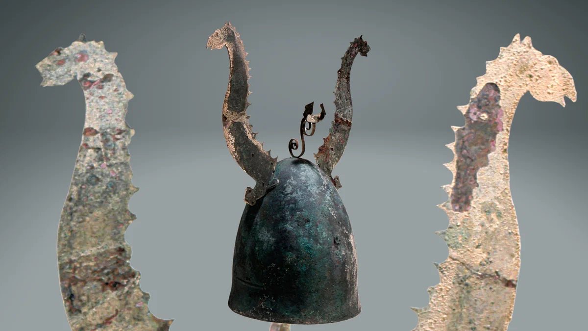 Радиоуглеродный анализ показал, что шлемы были изготовлены в 800-е годы до н. э. Никакими викингами на территории Дании в то время не пахло, драккары устремятся бороздить морские просторы на 1500 лет позже. В Дании и Швеции были найдены около 50 артефактов (бронзовые фигурки и настенные рисунки.), изображающих людей в подобных головных уборах. Все они также относятся к бронзовому веку.