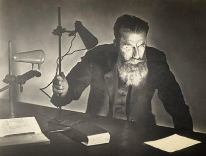 Икс-лучи оказались электромагнитными колебаниями, как и видимый свет, но с частотой колебаний во мною тысяч раз большей и с меньшей длиной волны. Они получаются путём преобразования энергии при столкновении катодных лучей со стенкой трубки Гитторфа.Отличный портрет "человека, который просветил мир"!