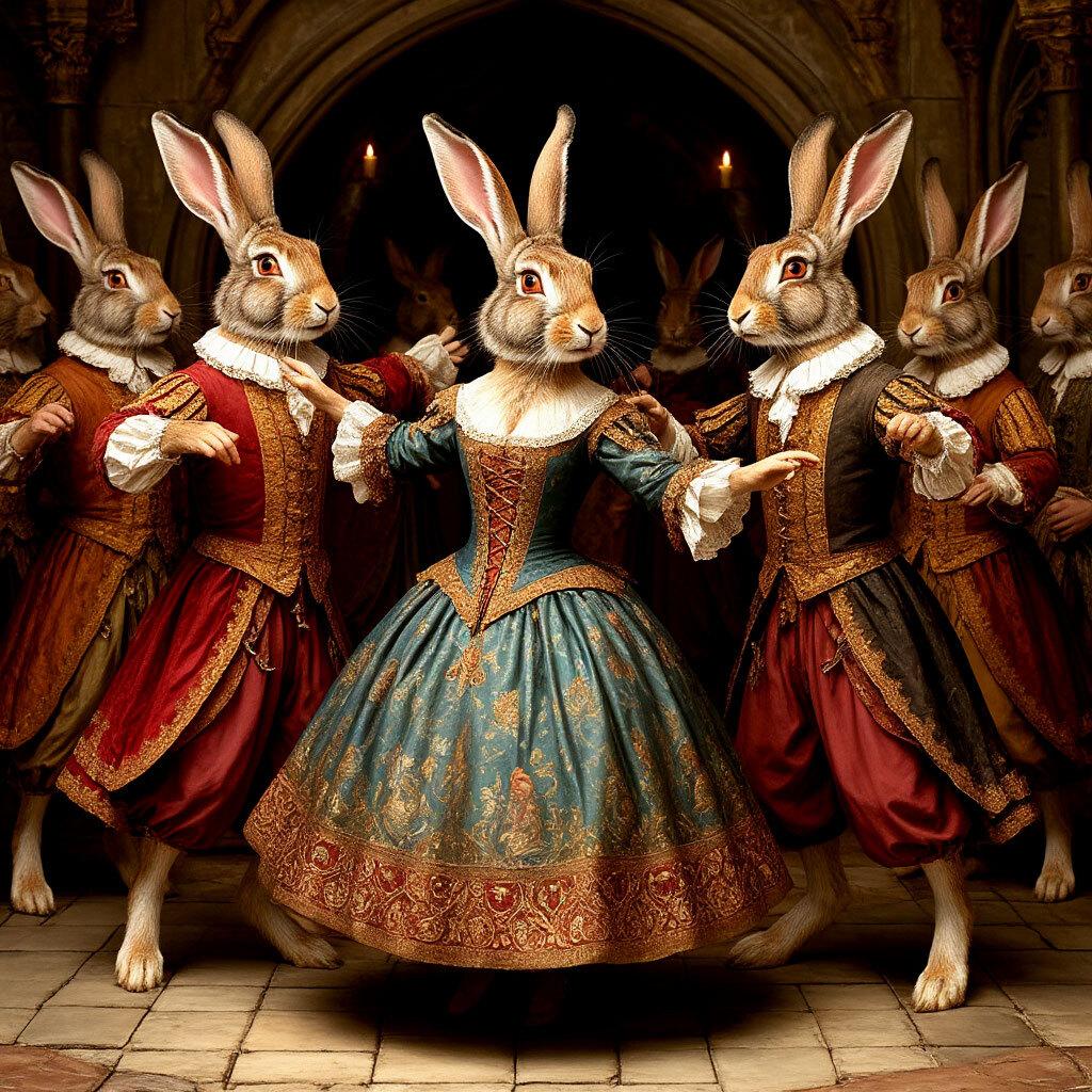 Получился забавный стоп-кадр. Что же такое зайчишки увидели, что у одного даже уши против ветра отлетели?)))