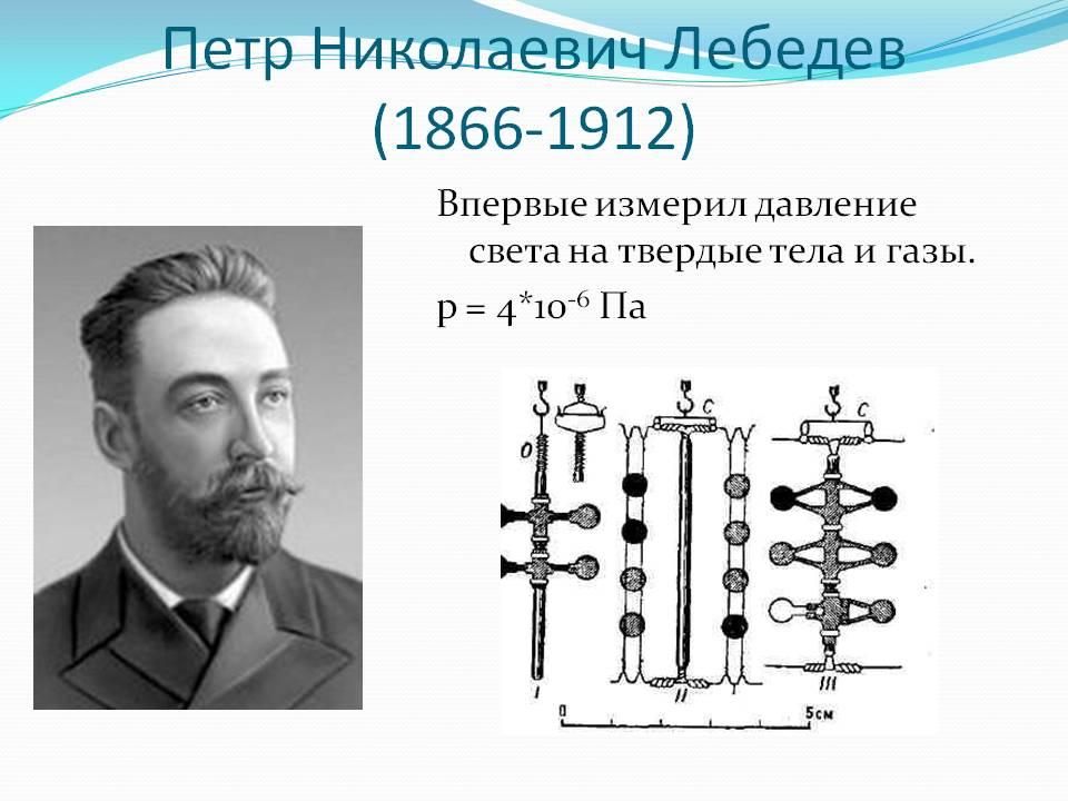Ещё Сенека знал, что кометные хвосты отклоняются от Солнца. Предполагали, что причиной этого отклонения служит механическое давление света. В XVIII в. его пытались обнаружить на опыте, но безуспешно. Проблемой светового давления занимались такие физики и астрономы, как Кеплер, Ньютон, Эйлер, Френель, Максвелл, Больцман. Она имела основное значение для науки и всё же до конца XIX в. оставалась неразрешённой.