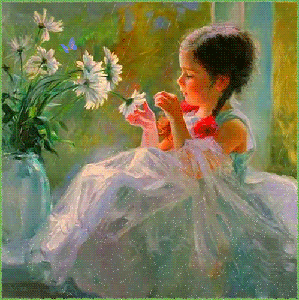 Японский кроссворд «Девочка ставит цветы в вазу»