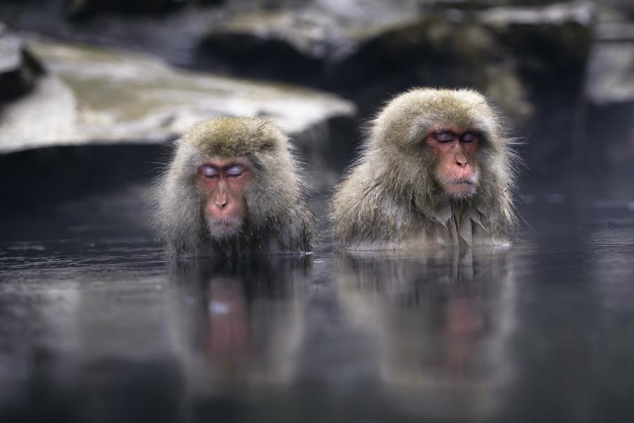 Аха-ха! Сразу вспоминаются японские макаки, расслабляющиеся в горячих источниках.