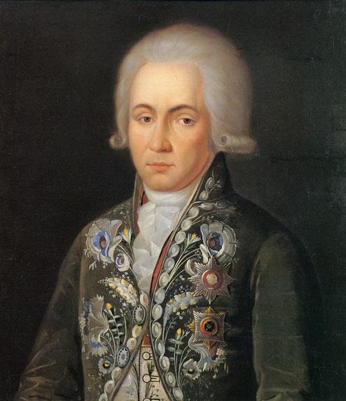 Что-то на этот раз Вы подобрали портрет персонажа в слишком молодом возрасте. Прямо совсем юным он выглядит, правда на нём уже 2 ордена. А вот grandfather-kind привёл протрет Г.Р. Державина (см. выше) в более солидном возрасте и на нём уже 5 орденов. Однако, он то же, наверно считает, что на картинке молодой Г.Р. Державин, т.к. узрел на нём следы "пластической операции".