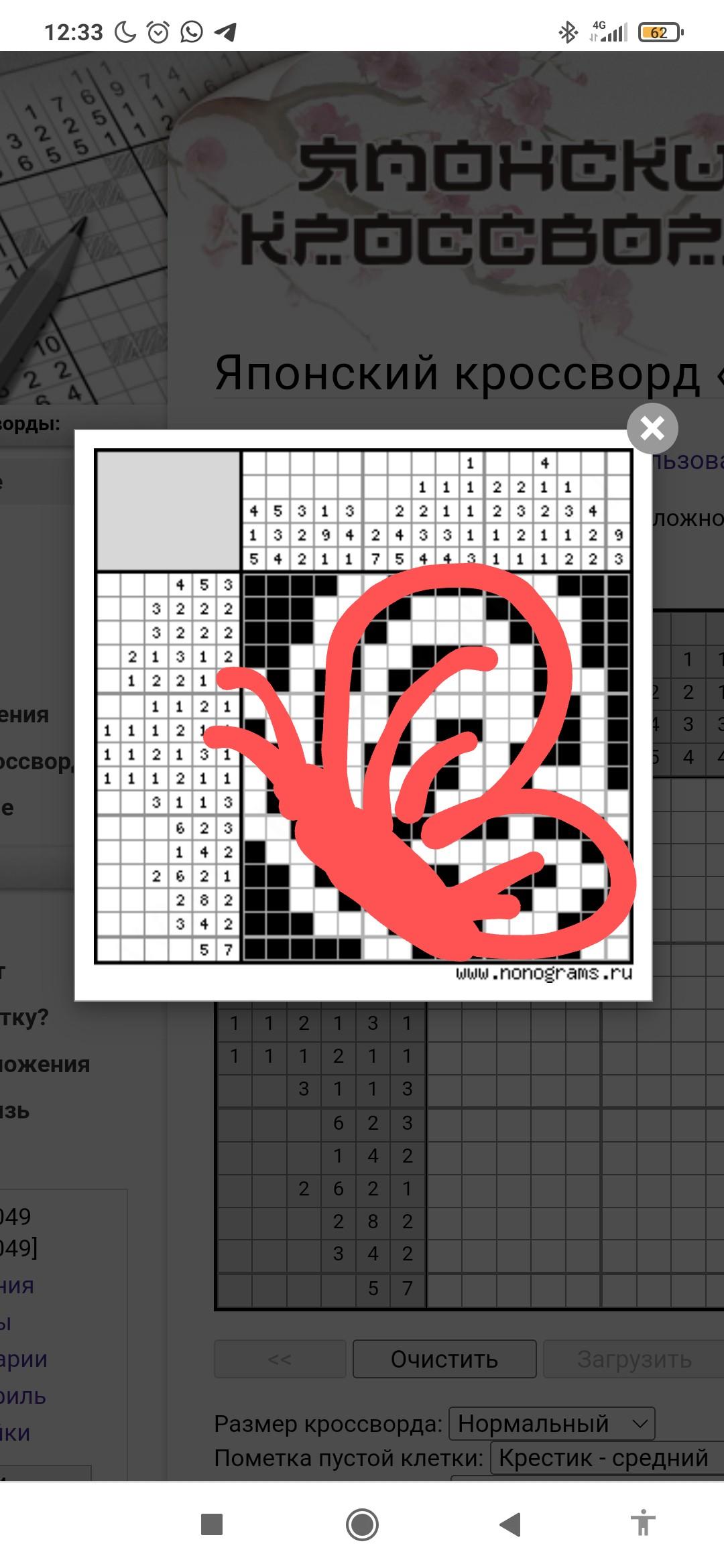 Японский кроссворд «Бабушка!..Ой...Бабочка!»