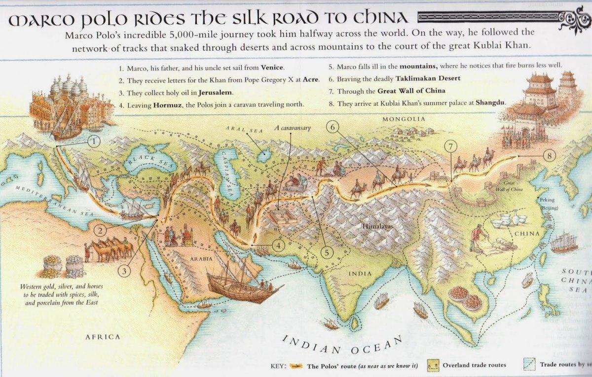 Благодаря «Путешествиям Марко Поло», продиктованным им в генуэзской тюрьме, европейцы впервые всесторонне познакомились Арменией, Ираном, Китем, Казахстаном, Монголией, Индией, Индонезией. Книга стала невероятно популярной и в то время считалась одним из самых ценных источников информации о внешнем мире. Более века спустя Христофор Колумб, плывя на поиски Индии, вез с собой эту книгу.